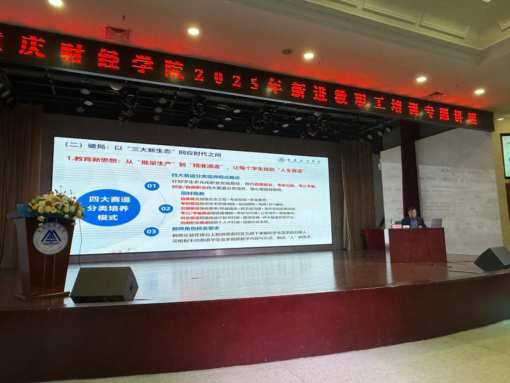 11月15日,学校2025年新进教职工培训首场专题讲座在学术报告厅顺利举行。校长吴华安教授结合二十届四中全会精神和《十五五规划》建议的学习理解,以“以变应变,以质图强,在民办高等教育的新赛道上共赴使命”为题作主题报告,向100余名新进教职工深入剖析民办高等教育发展趋势,详解学校转型破局战略,凝聚起“与时代共舞、与学校共生”的奋进力量。